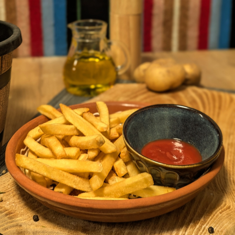 French fries served with ketchup.